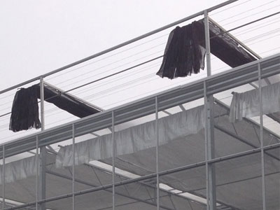 يتم تثبيت نظام التظليل الخارجي فوق إطار الدفيئة، مدعومة من قبل المؤتمرات والأحداث. مصنوعة من صافي التظليل الخارجي من المواد السوداء والأسلاك المستديرة ومثبتها بواسطة سلاسل البوليستر الأسود.