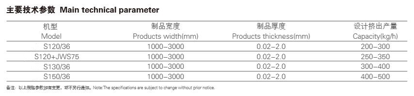 يتبنى خط الإنتاج هذا تقنية صب براءات الاختراع ذات التصميم المركزة، وتصميم المسمار في البثق الخاص للمواد الأليفاتية TPU، ومجهزة بجهاز تفريغ أفلام أعلى وأعلى لأسفل، والتعديل التلقائي عبر الإنترنت والتحكم في سماكة الفيلم، ونظام العناية التلقائي بالكامل التقنيات الناضجة المتقدمة الأخرى في هذه الصناعة، وذلك لتحقيق التشغيل التلقائي والمستقر لخط الإنتاج.