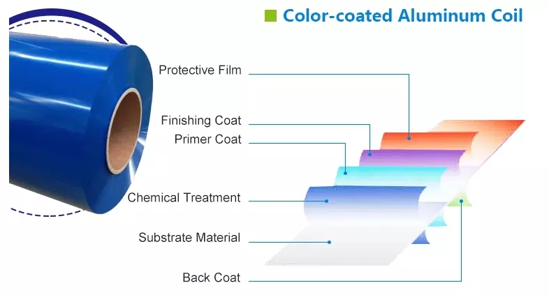 يتم إنتاج صفائح الألومنيوم البترونية / اللون المغلفة في مجموعة واسعة من الخصائص الميكانيكية وتشمل الطيف من الانتهاء من الطلاءات الخارجية عالية المتانة، راتنجات الايبوكسي، بوليستير، الفلوروكربونات والمعادن. يمكن تحديد الألوان من RAL. تتوفر معظم الطلاءات على جانب واحد أو كلا الجانبين، ورسمت مع طبقتين أو 3 طبقات.